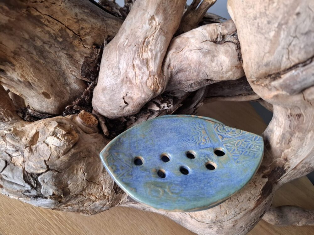Wzorzysta mydelniczka w kolorze niebieskim.