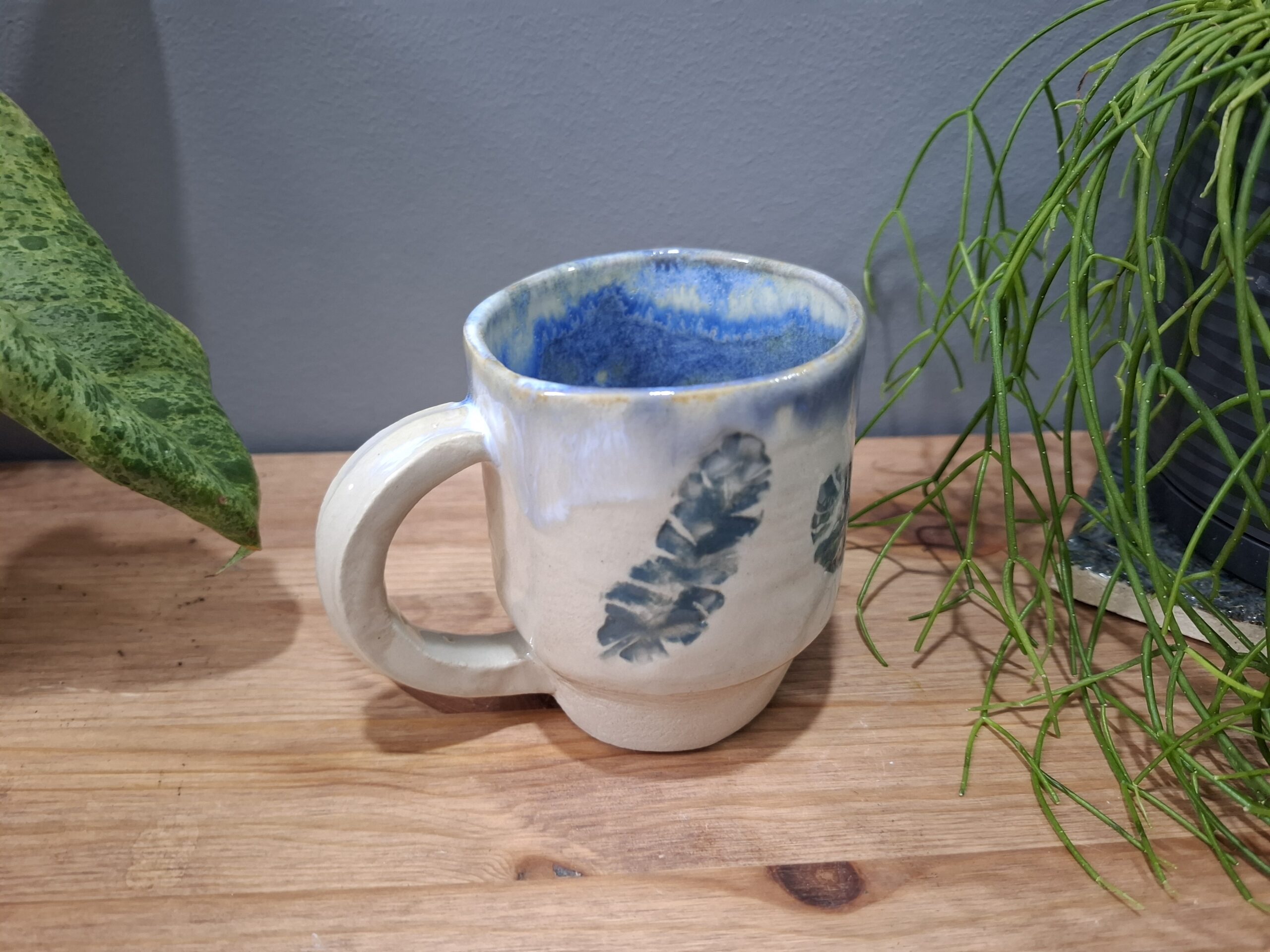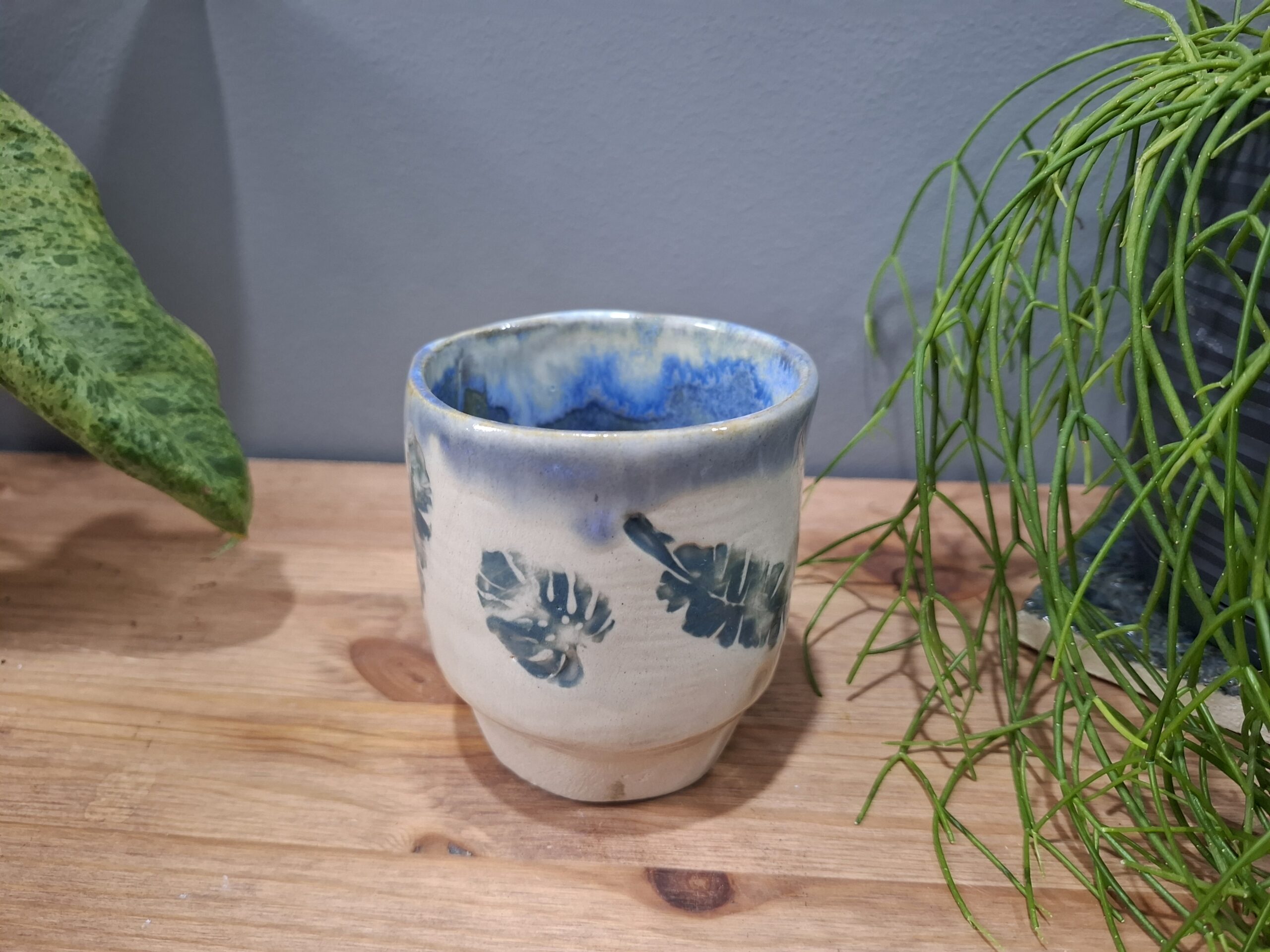 Ręcznie robiony kubek ceramiczny w liście.
