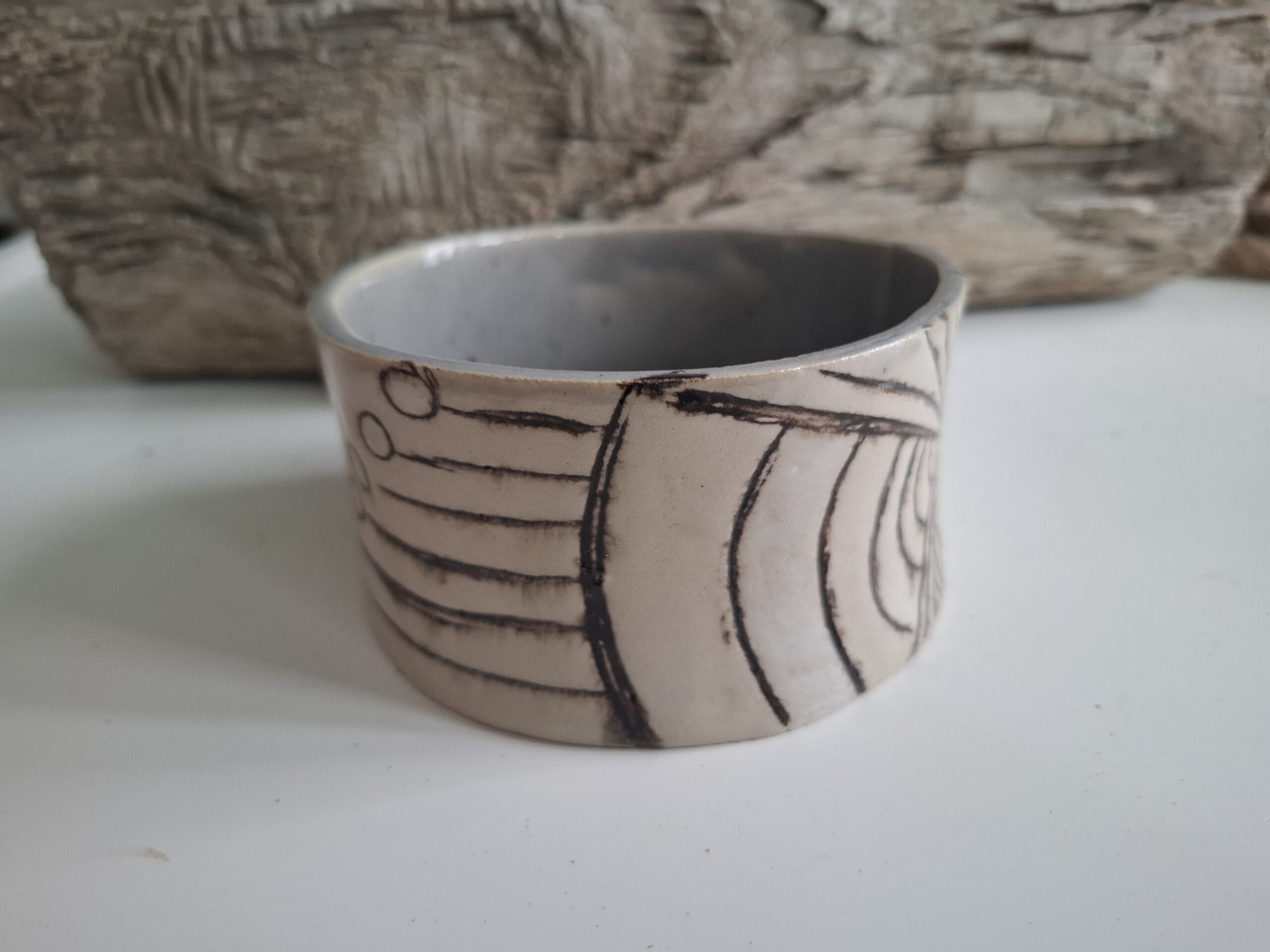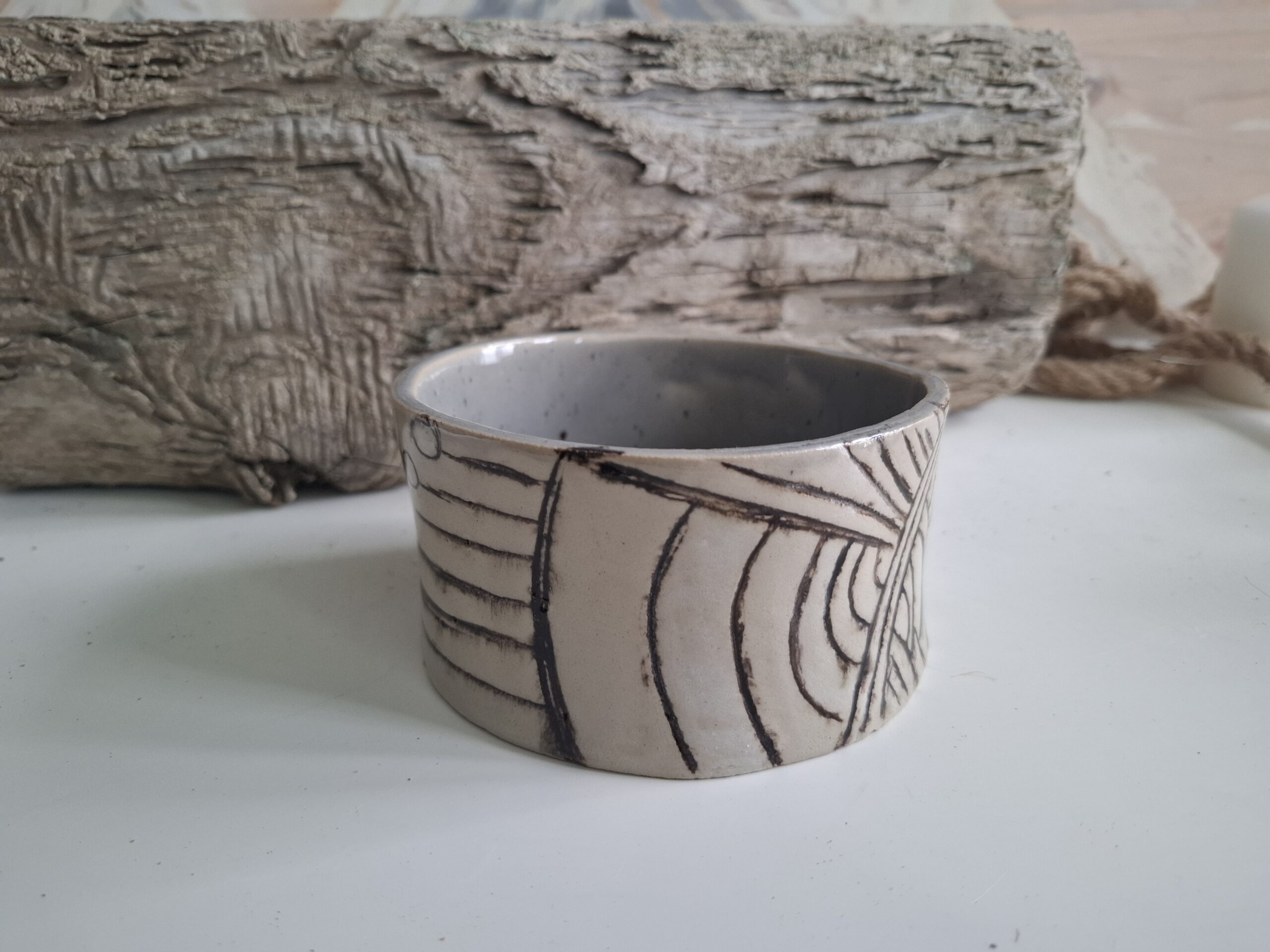 Miska ze żłobieniami pokrytymi czarną angobą, we wzory.