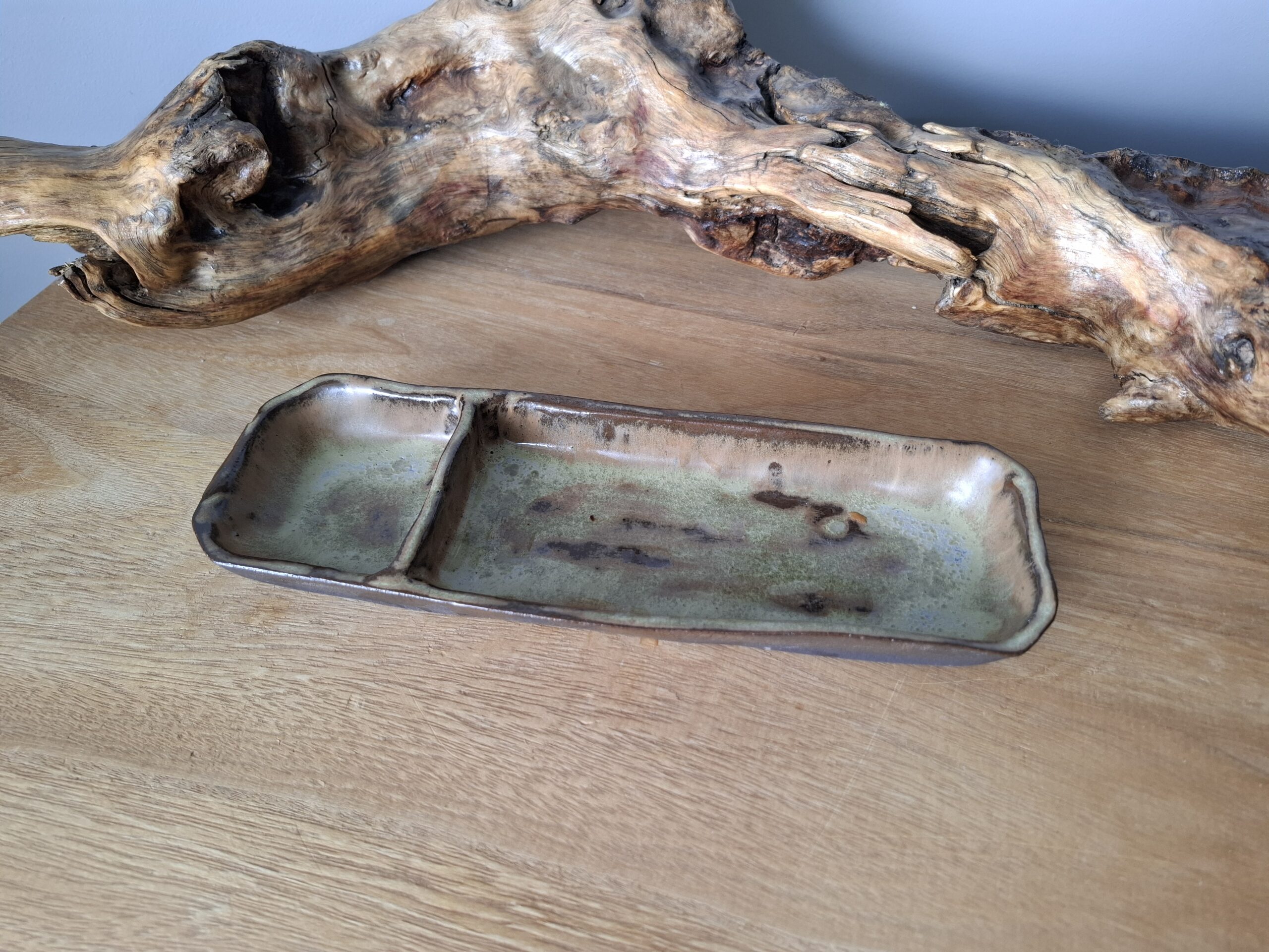 Podłużna miska rustykalna z przegródką wykonana przez Marta’s Craft.